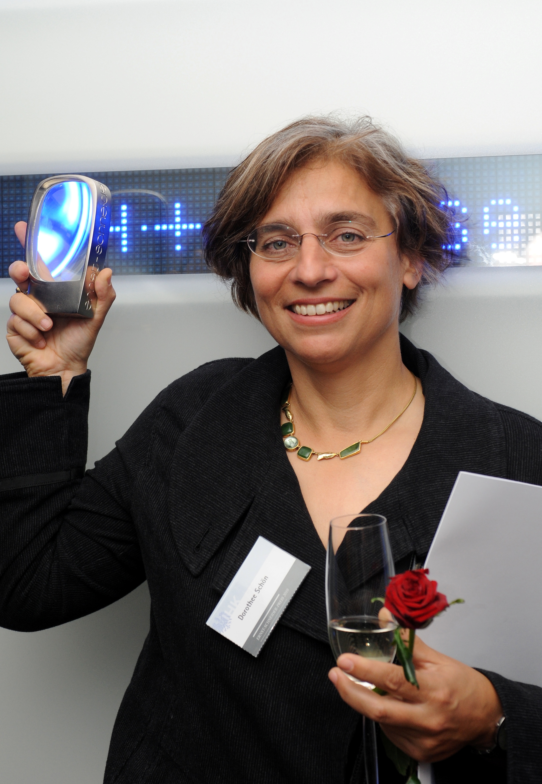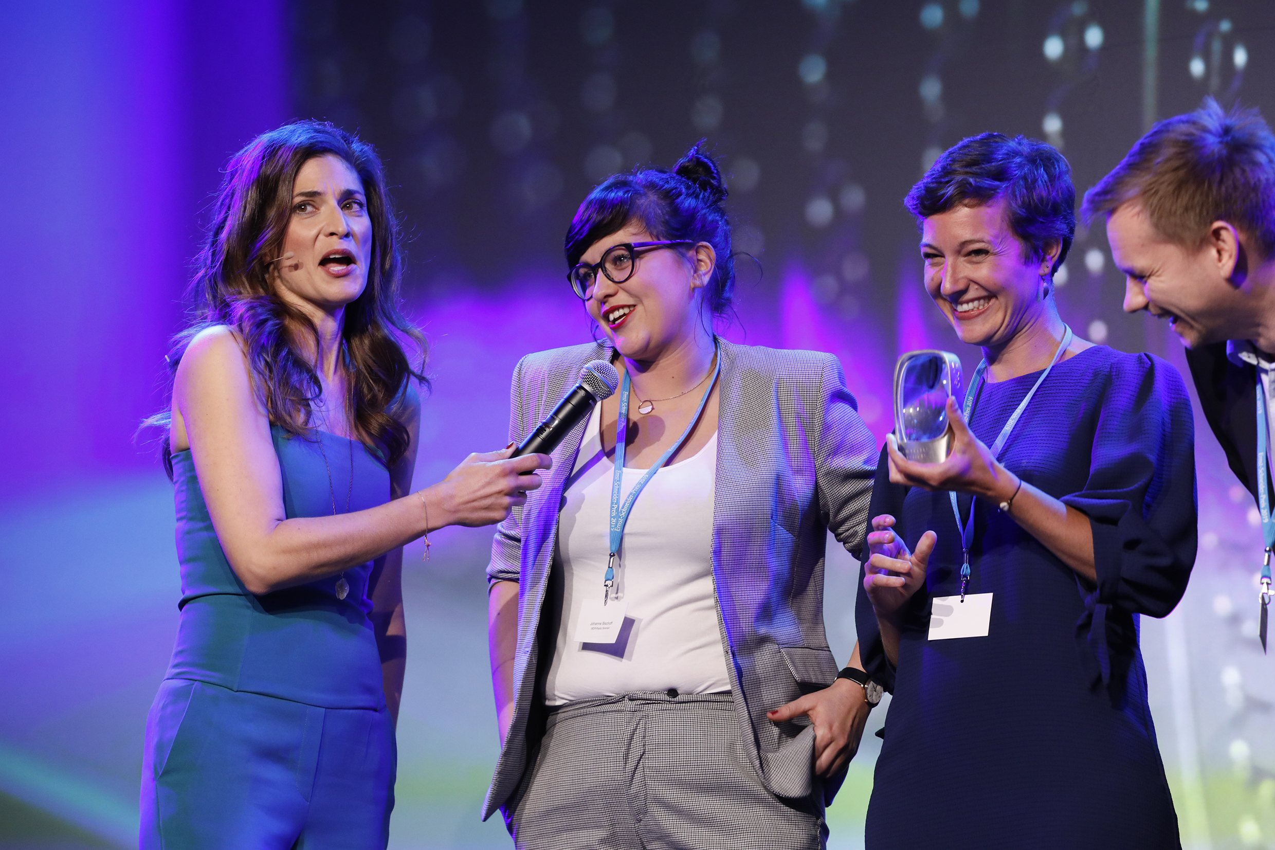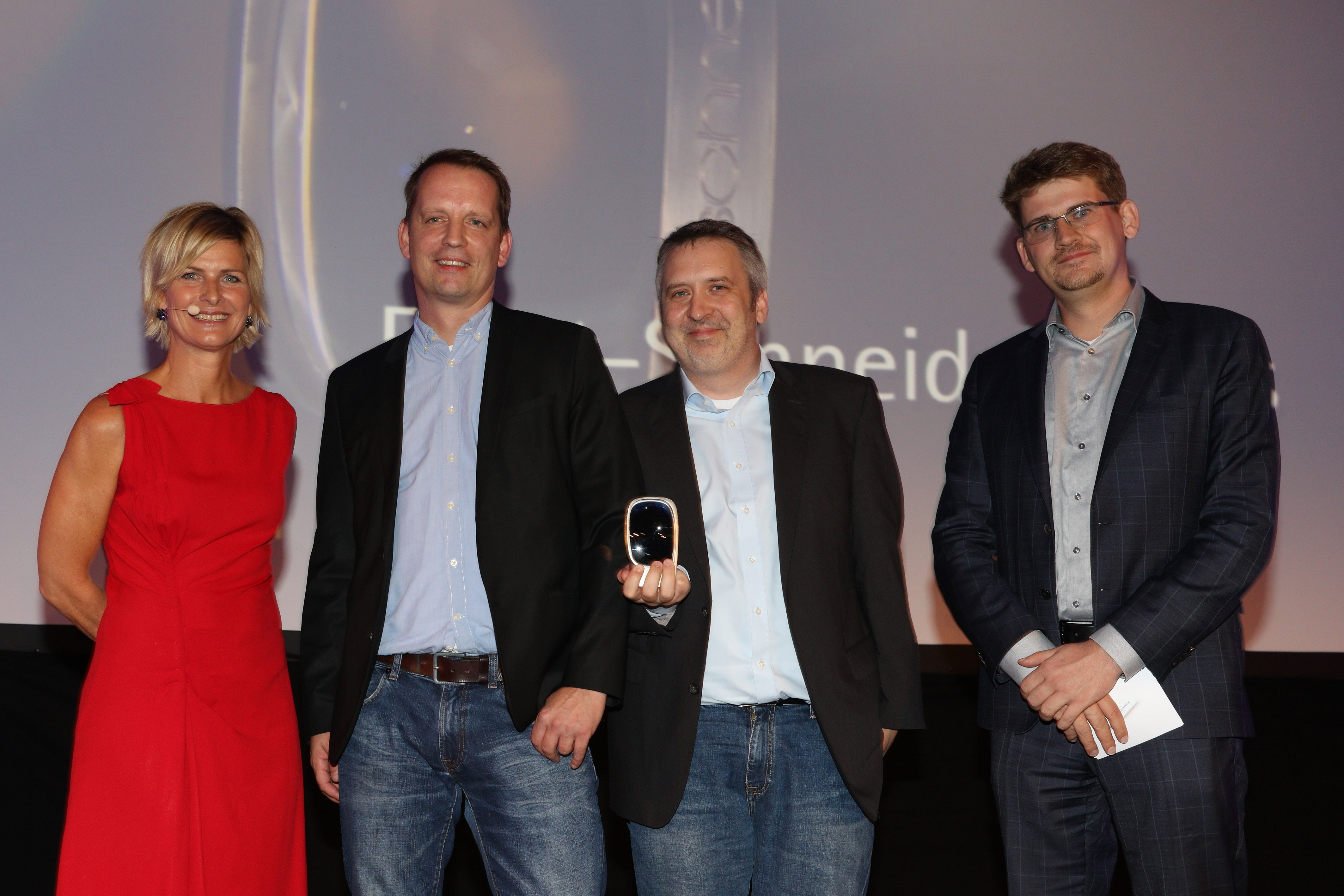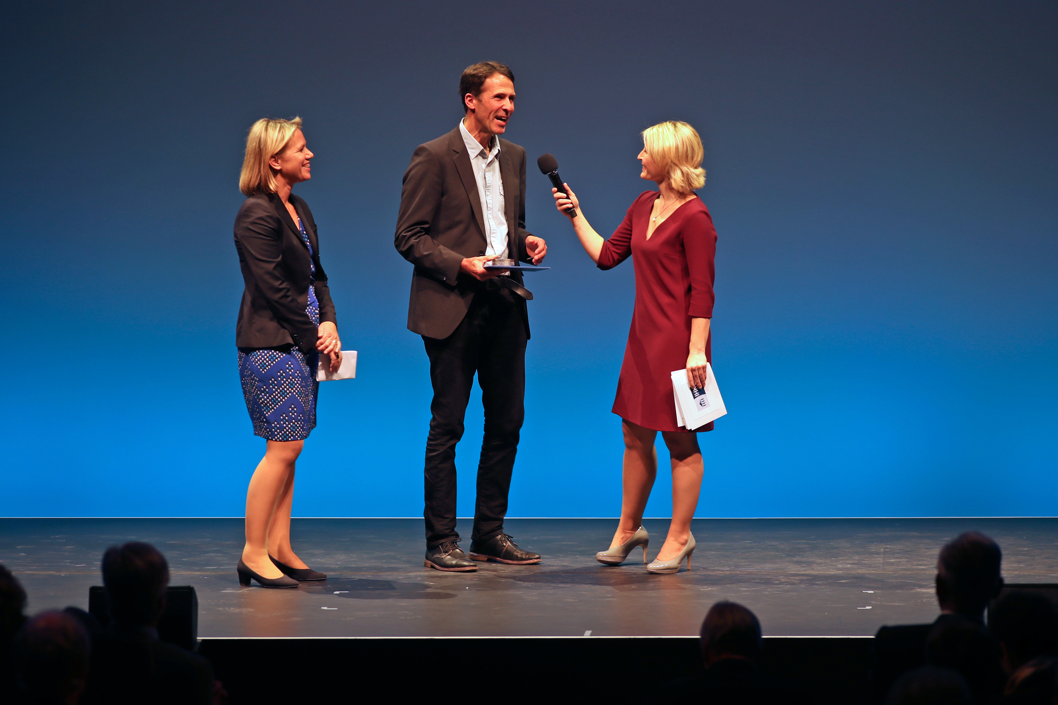 Constanze Freriks, Hartmut Spiesecke, Geschäftsfürer des Ernst-Schneider-Preises, und Moderatorin Katty Salié