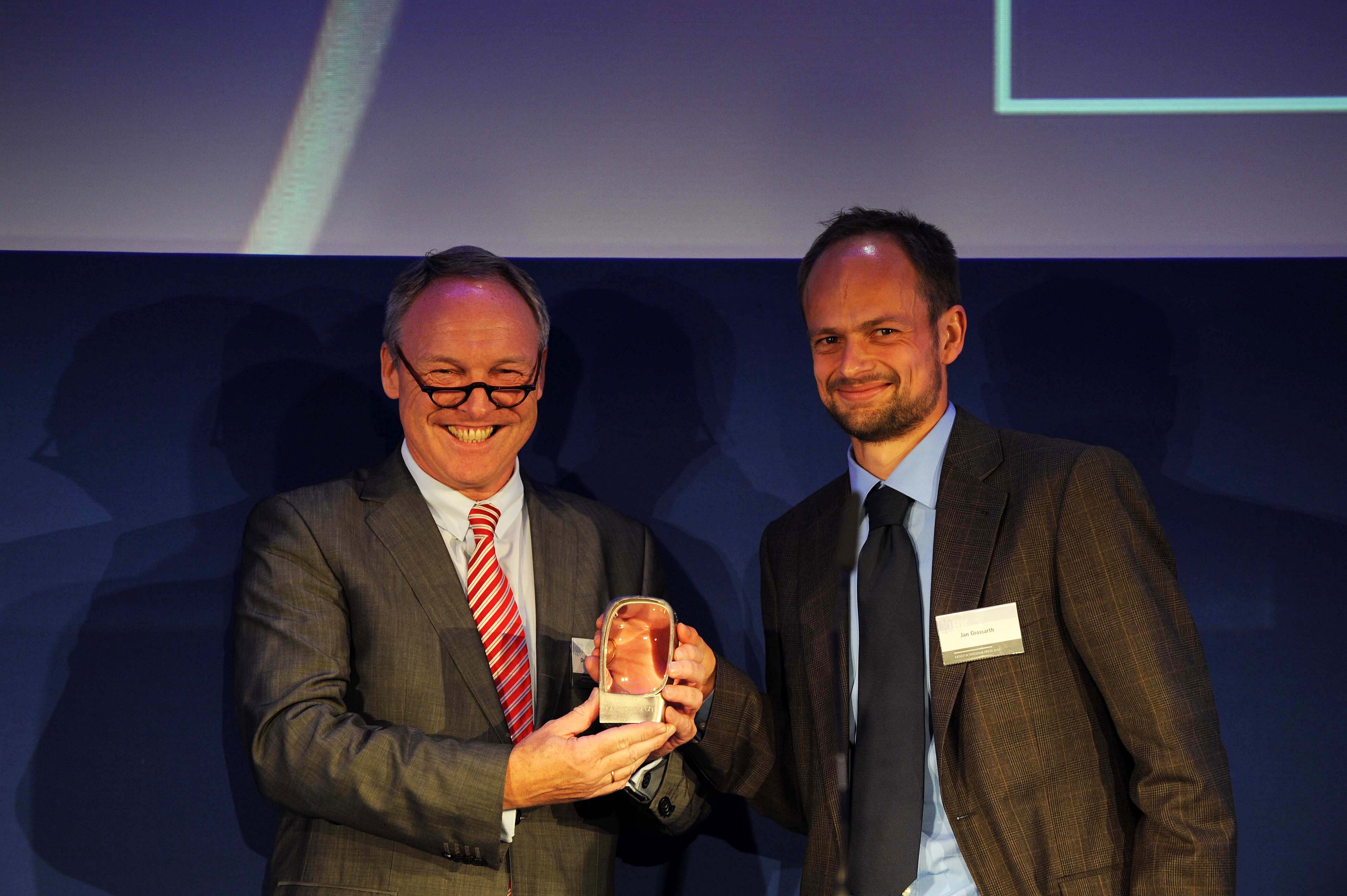 Laudator Jan Metzger (Intendant Radio Bremen), Preisträger Lorenz Rollhäuser (NDR/SWR)