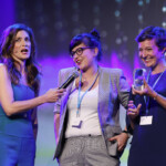 Constanze Freriks, Hartmut Spiesecke, Geschäftsfürer des Ernst-Schneider-Preises, und Moderatorin Katty Salié