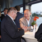 Die Gastgeber von links nach rechts: Dr. Hubertus Hille (Hauptgeschäftsführer der IHK Bonn/Rhein-Sieg), Jürgen Steinmetz (Hauptgeschäftsführer der IHK Mittlerer Niederrhein), Michael Bayer (Hauptgeschäftsführer der IHK Aachen), Stefan Hagen (Präsident der IHK Bonn/Rhein-Sieg), Dr. Werner Görg (Präsident der IHK Köln), Andreas Schmitz (Präsident der IHK Düsseldorf), Ulf Reichardt (Hauptgeschäftsführer der IHK Köln), Michael Wenge (Hauptgeschäftsführer der Bergischen IHK), Dr. Stefan Dietzfelbinger (Hauptgeschäftsführer der Niederrheinischen IHK Duisburg-Wesel-Kleve) und Gregor Berghausen (Hauptgeschäftsführer der IHK Düsseldorf)